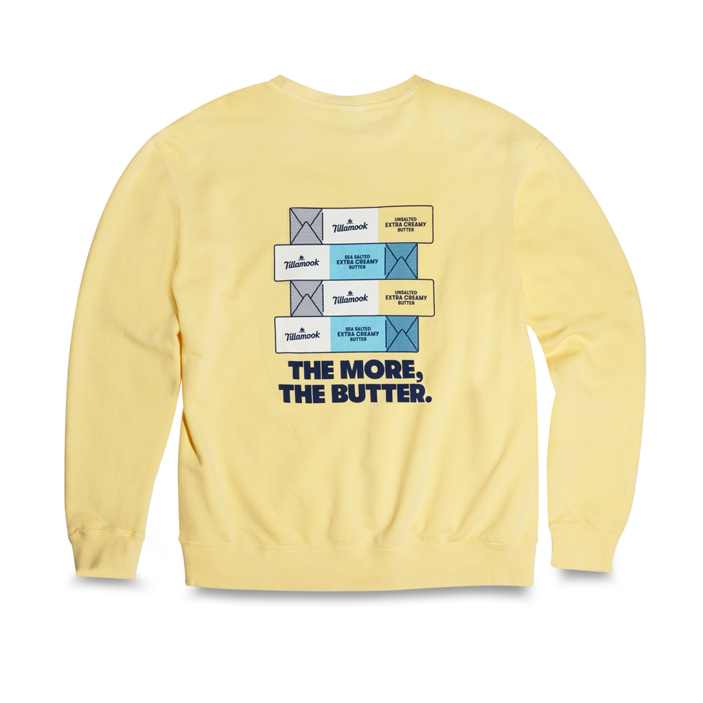 With the phrase “The more, the butter” on the back, this sweater will be your go-to for staying cozy and warm.
