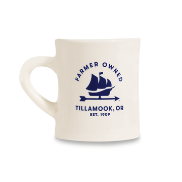This classic diner mug features iconic ship symbol, the Morning Star. Tillamook County farmers built the Morning Star, Oregon's first official ship, in 1854 to carry their dairy goods to market.